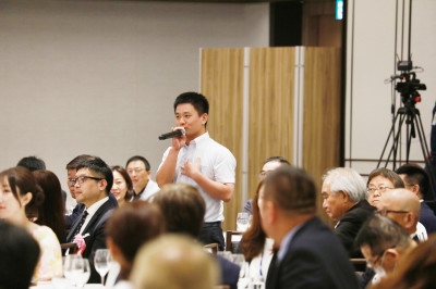 | ▲NPO法人中部日中经济交流会理事长大矢裕慈致干杯辞 | ▲中部日本华侨华人联合会会长金大一和爱知华侨总会会长赵晴主持交流会 |